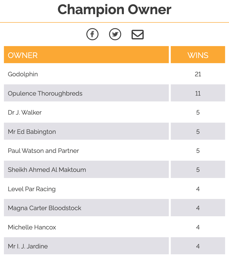 Let's hope for continued success on all tracks, and who knows, maybe even to be crowned All-weather Champion Owner come April...
